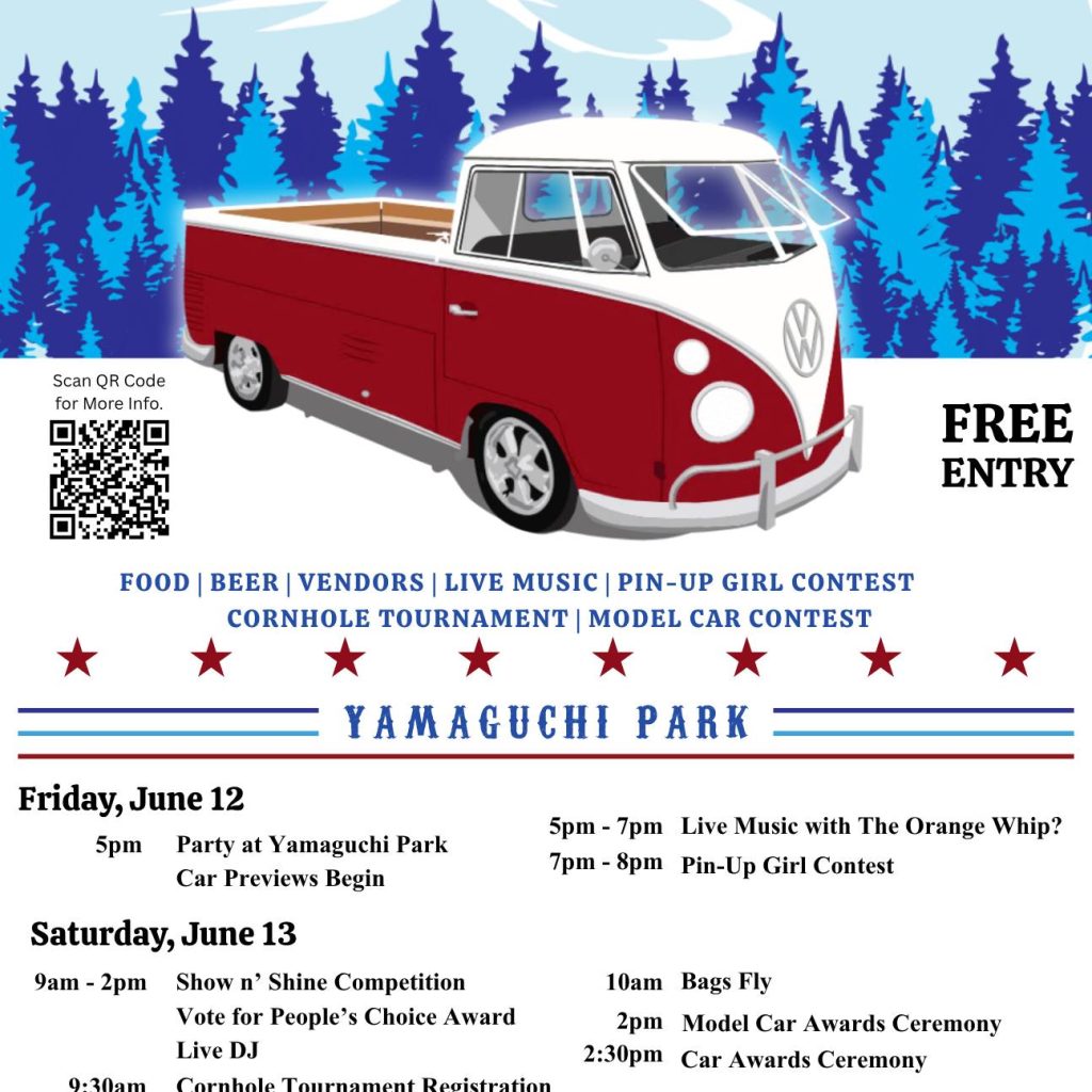 On Saturday, the Car Show participants will again be at Yamaguchi Park for the Show ‘n’ Shine competition. Car enthusiasts can admire the cars as they are judged to win awards in various categories. Come vote for your favorite vehicle in our People’s Choice category. There will be live music from 10:00 AM to 2:00 PM. Food and drinks will be available.
