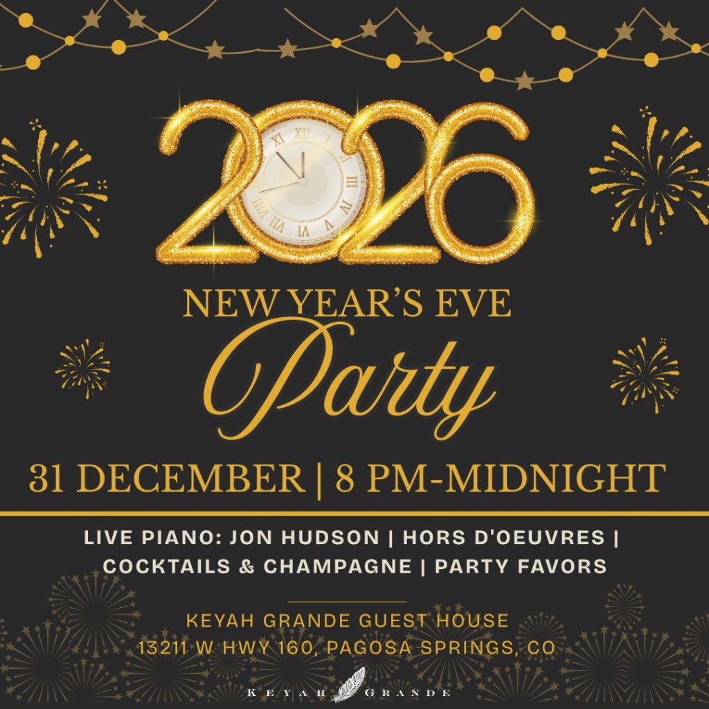 SOLD OUT Cocktails, champagne, live music and FUN! 8-midnight. Tickets at https://tables.toasttab.com/keyah-grande-guest-house-13211-west-highway-160/experience/new-years-eve-party-at-keyah-grande?partySize=2&dateTime=2025-12-31T20:00:00.000-07:00&fbclid=IwY2xjawPCi3xleHRuA2FlbQIxMABicmlkETB4VHM1THFCc1l1cDk3MjdKc3J0YwZhcHBfaWQQMjIyMDM5MTc4ODIwMDg5MgABHvh-pZSrFOaGHA52h0MVfeHO0bK0BPa38U04SNPbvc_pHFvK7UjLN3-knQ2K_aem_HomaRdl2HVT4P4R3pOhLeg